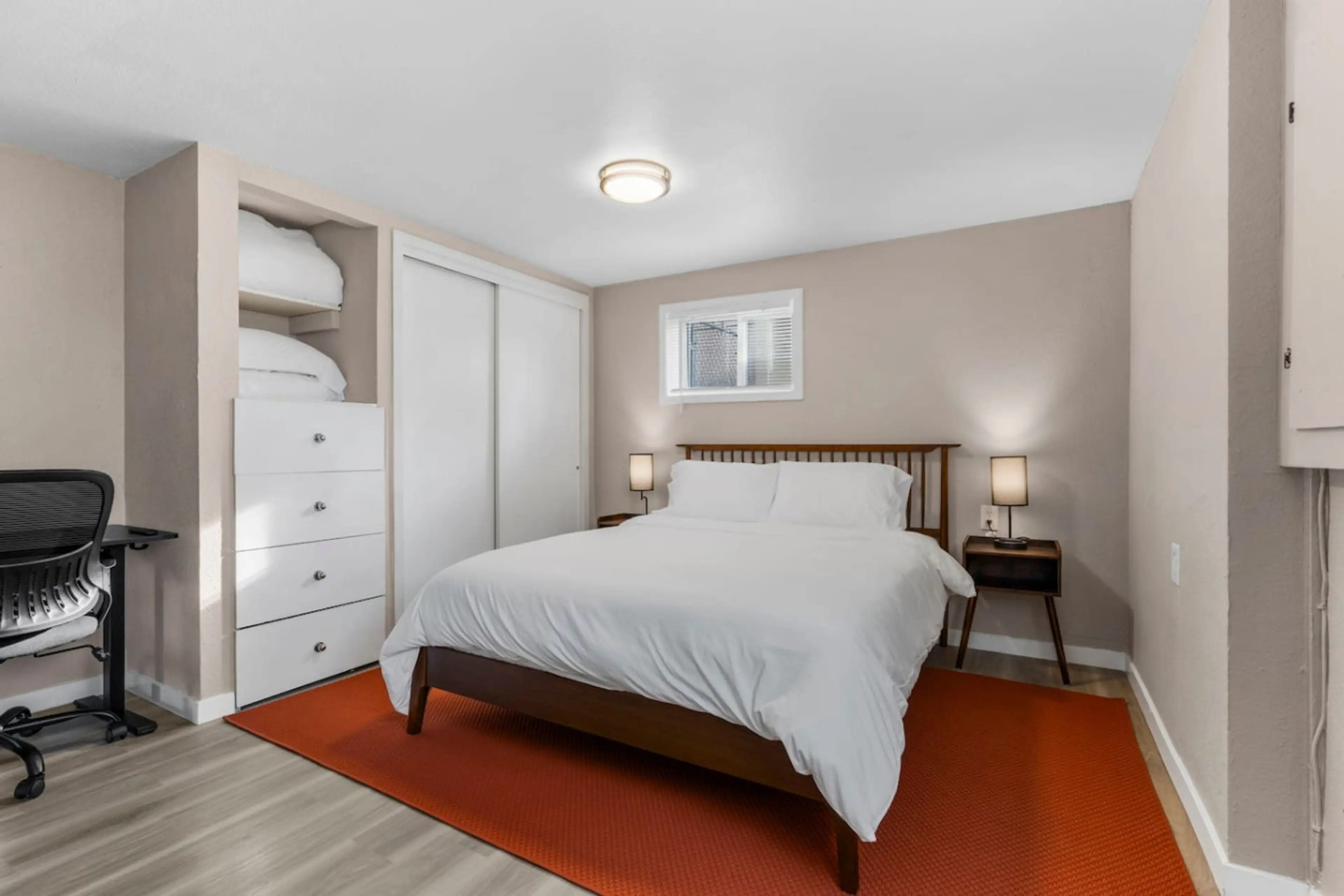 A refined, moody retreat with rich textures, inviting decor, and room to unwind. This spacious suite offers a full kitchen, elegant living space with a sofa that sleeps two, a serene bedroom, bunk area, and private entrance. Enjoy direct access to the outdoor court and a quiet setting just minutes f...